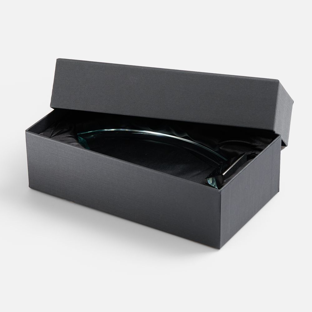 Конструкция награды разъемная: стеклянную часть стелы при необходимости можно вынуть из основания.