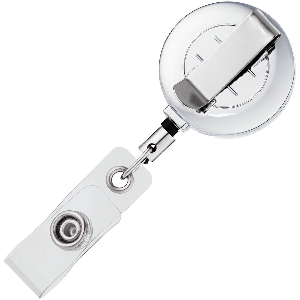 Ретрактор крепится к одежде, а с другой стороны можно поместить бейдж, визитку или магнитную карту. В корпусе спрятан сворачивающийся шнур, который позволяет при необходимости демонстрировать содержимое держателя, не снимая его.