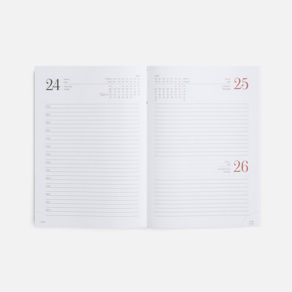 Ежедневник с твердой обложкой без поролона, выполнен из материала Nebraska, красный PP, дополнен ляссе и капталом в цвет обложки.