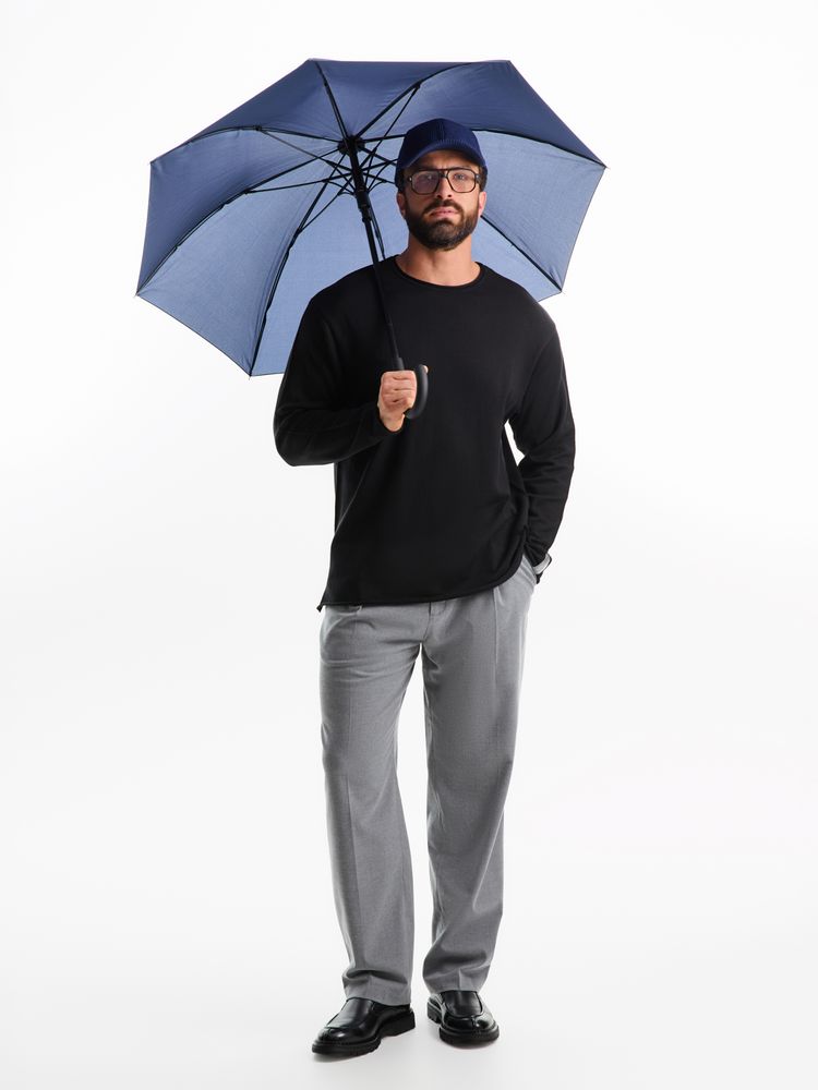 На первый взгляд — это классический зонт-трость в строгом дизайне: система защиты от ветра, прорезиненная ручка, лаконичные линии. Но в первый же дождь происходит магия — на поверхности проявляются изящные узоры, превращая защиту от непогоды в арт-объект. После высыхания рисунок бесследно исчезает, оставляя только намёк на скрытую индивидуальность.