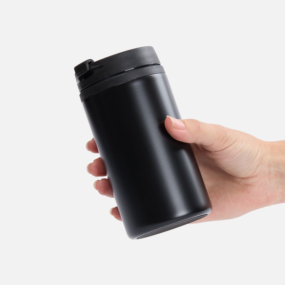 Двухслойная конструкция из пищевого пластика внутри и нержавеющей стали снаружи. Герметичная завинчивающаяся крышка с откидным клапаном для питья.