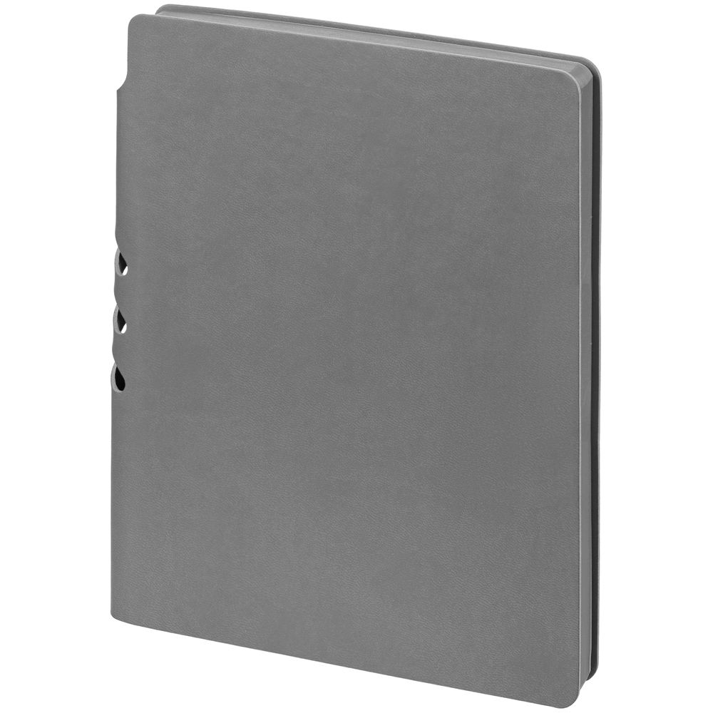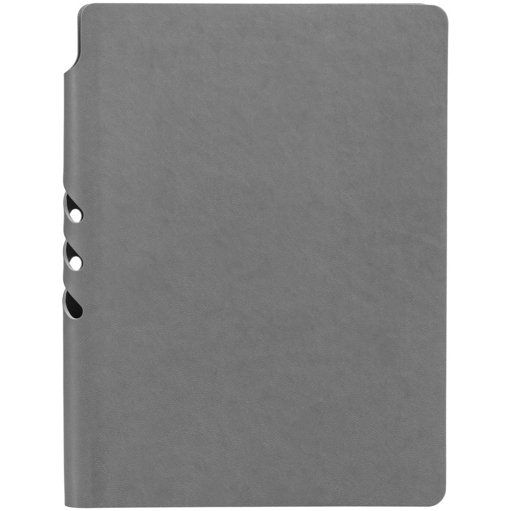 Гибкая обложка ежедневника выполнена из материала Latte, серый СС. Внутри корешка — специальное место для крепления ручки размером до 15х0,9 см.