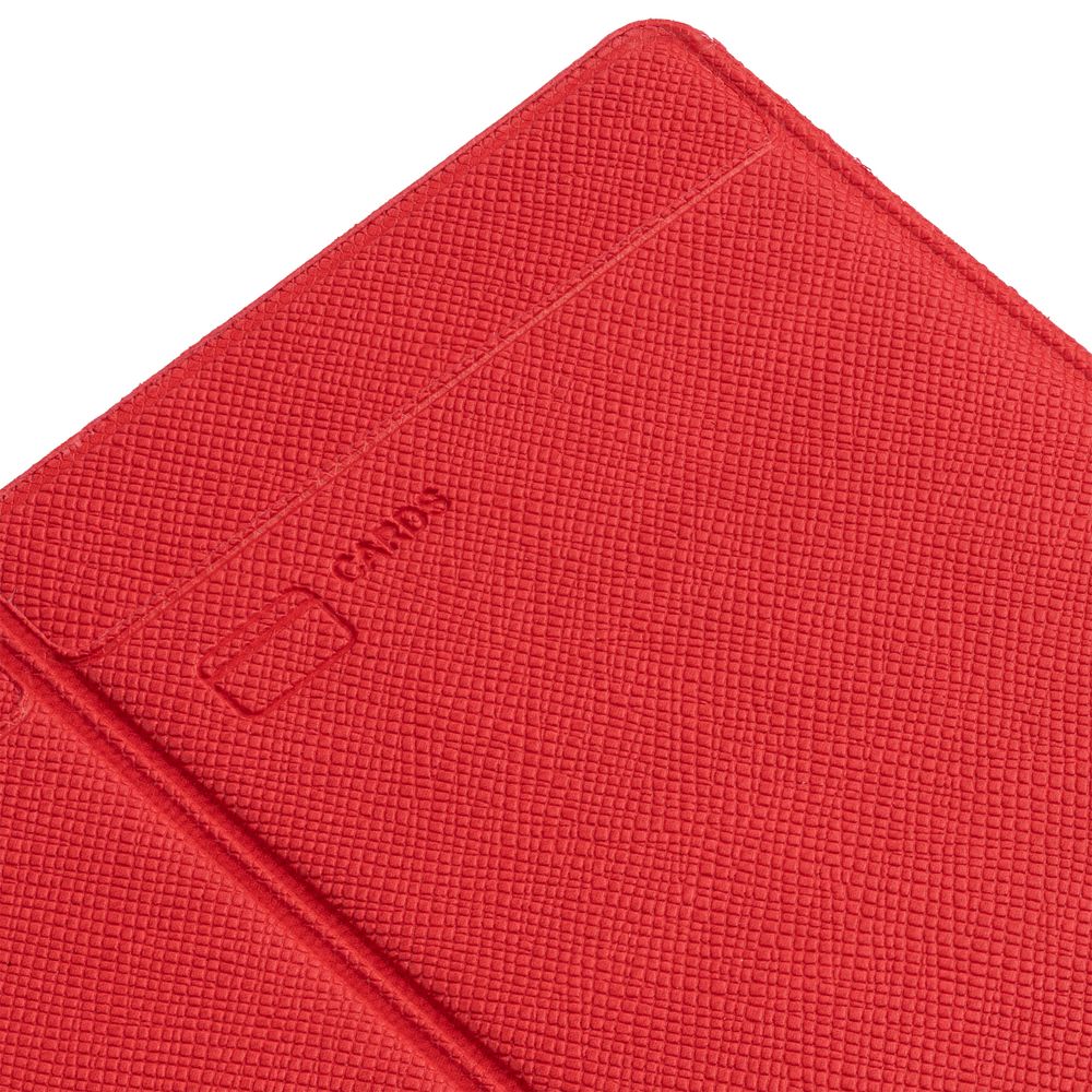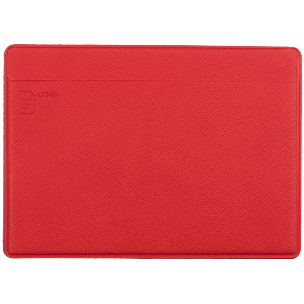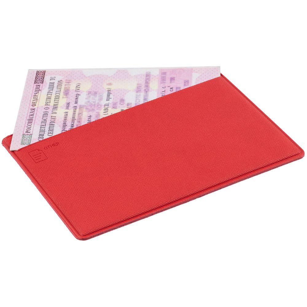 Обложка из искусственного материала, имитирующего сафьяновую кожу, с четырьмя карманами: для водительского удостоверения, свидетельства о регистрации, денег и пластиковых карт.