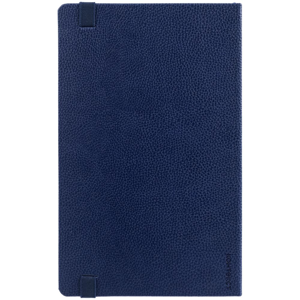 Ежедневник с твердой обложкой, выполнен из материала LaFite, темно-синий ХХ,дополнен резинкой с металлическим круглым шильдом и ляссе в цвет обложки.