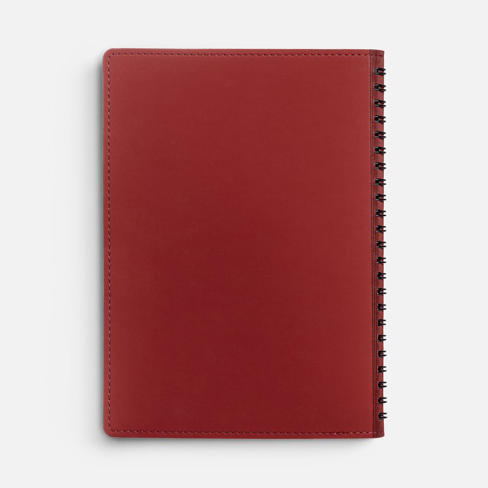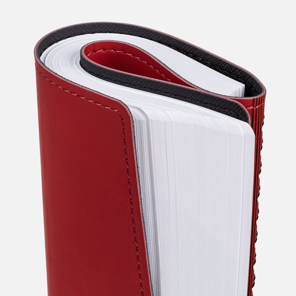 Ежедневник с гибкой обложкой, выполнен из материалов Soft Touch, красный РР и Nice Touch, черный АА.