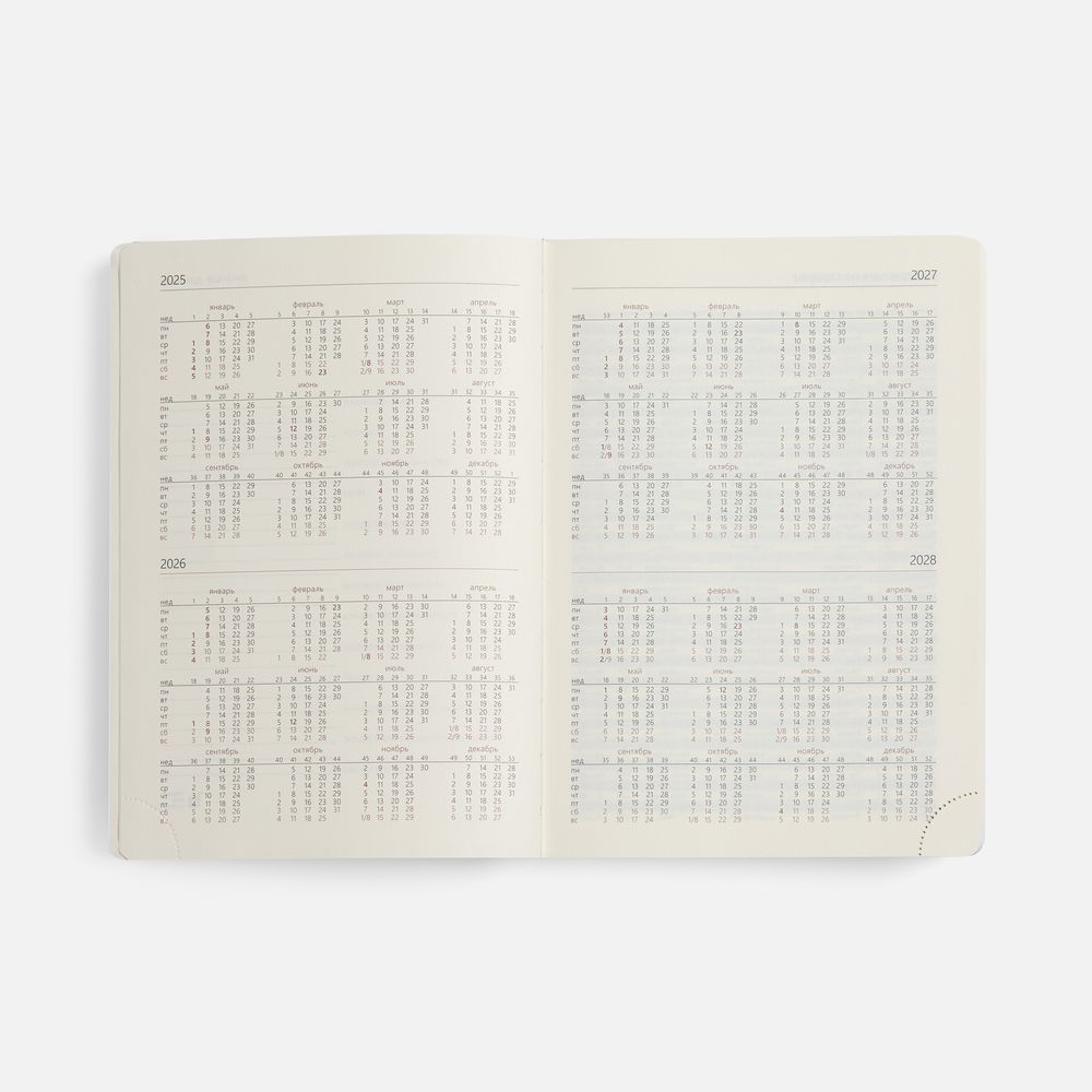 Ежедневник с твердой обложкой c поролоном, выполнен из материала Nubuck, серый СС, дополнен капталом и ляссе серого цвета. Застежка — хлястик на магните.