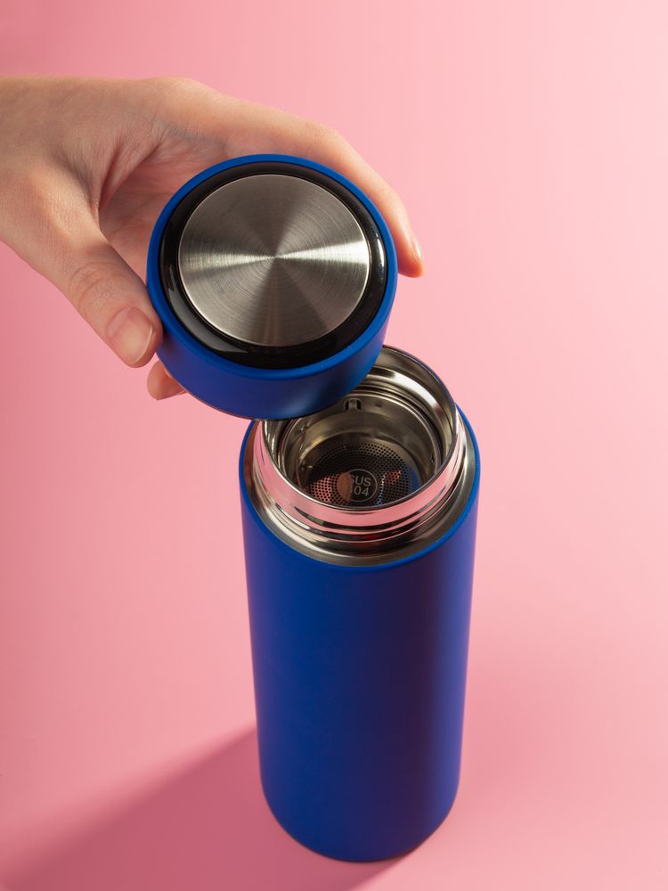 Компактный термос Percola пригодится и в городе, и на природе. Съемное ситечко поможет заварить чистую чашку чая или кофе, а цилиндрический корпус даст широкие возможности для маркетинговых сообщений.