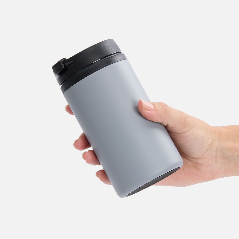 Двухслойная конструкция из пищевого пластика внутри и нержавеющей стали снаружи. Герметичная завинчивающаяся крышка с откидным клапаном для питья.