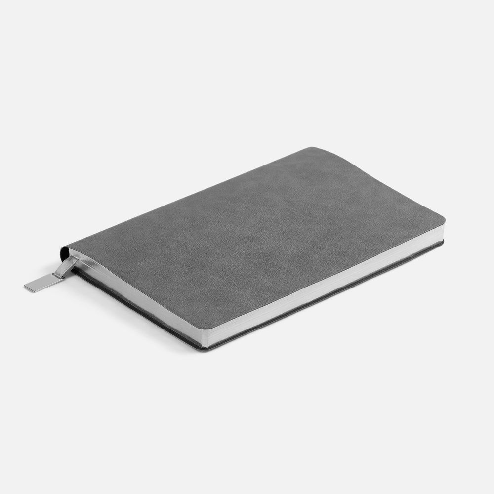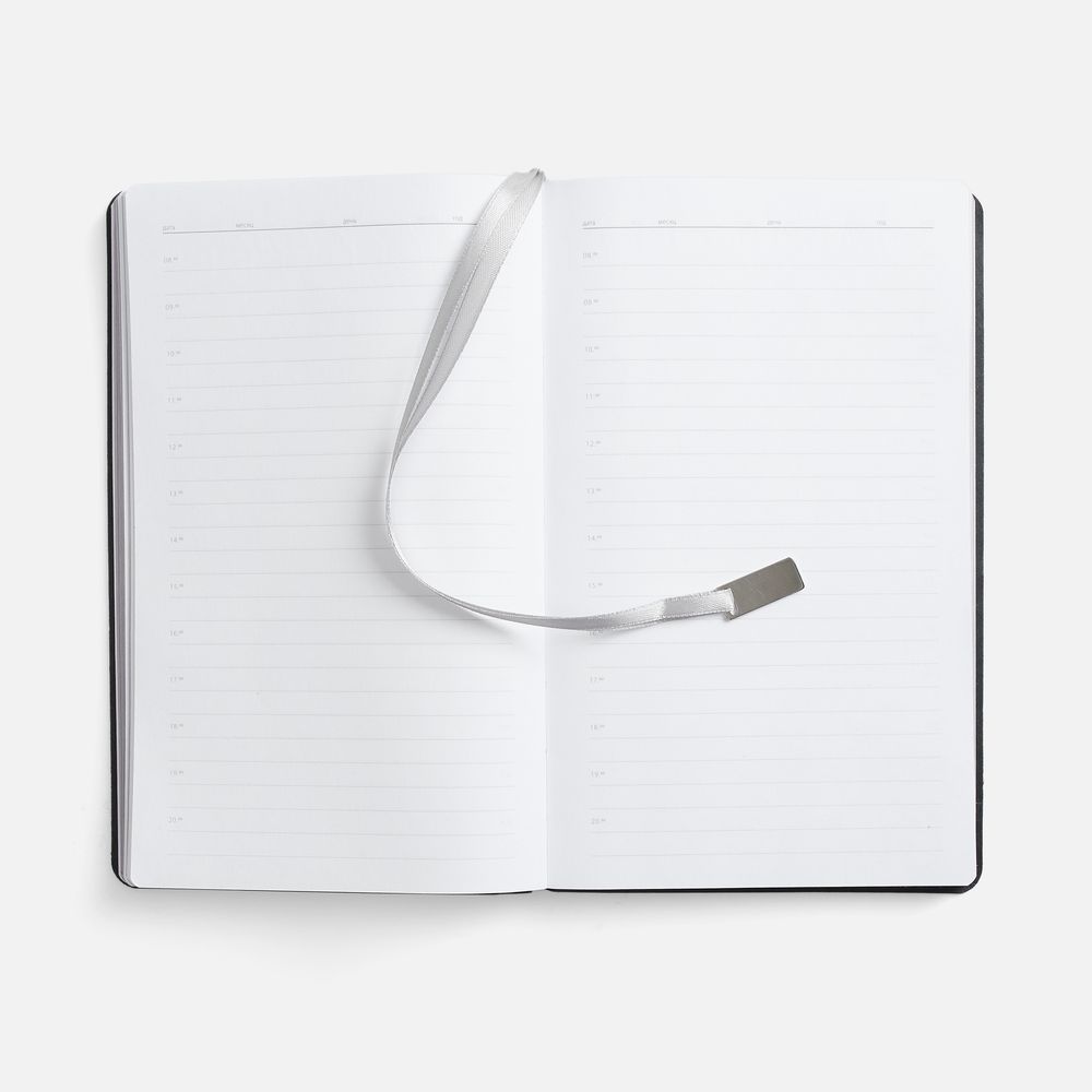 Ежедневник с гибкой обложкой, выполнен из материала Petrus, оранжевый ОО, дополнен серым ляссе с металлическим шильдиком.