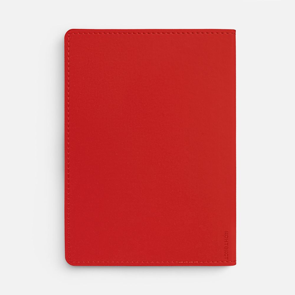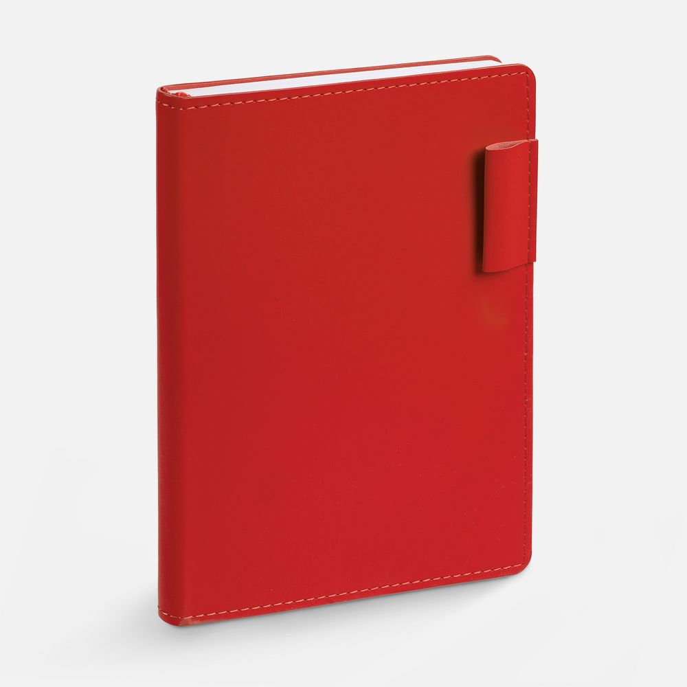 Ежедневник с гибкой обложкой из материала Soft Touch Ultra, красный РР и Latte, красный (внутренний материал), дополнен петелькой для ручки из покровного материала, капталом, ляссе и закрашенным срезом обложки в цвет материала.