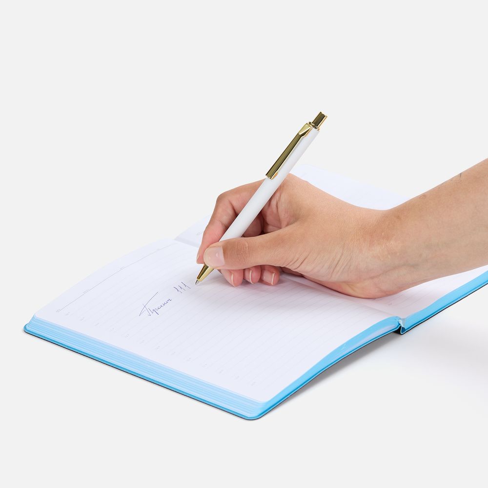 Шариковая ручка с покрытием софт-тач и золотистыми деталями. Клип оригинальной формы.