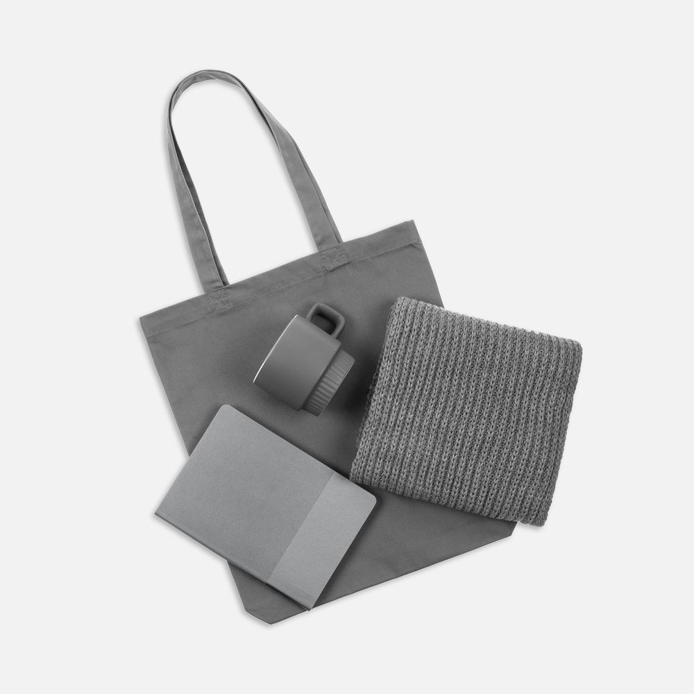 - сумка - хлопок 100%; шарф - акрил 100%; ежедневник - искусственная кожа; кружка - каменная керамика