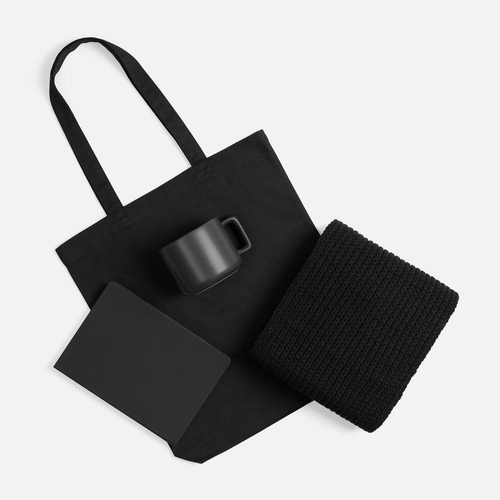 - сумка - хлопок 100%; шарф - акрил 100%; ежедневник - искусственная кожа; кружка - каменная керамика