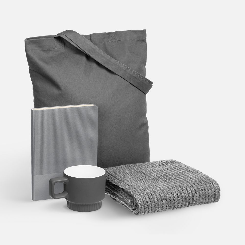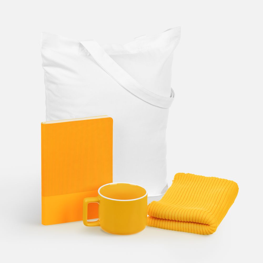- сумка - хлопок 100%; шарф - акрил 100%; ежедневник - искусственная кожа; кружка - каменная керамика