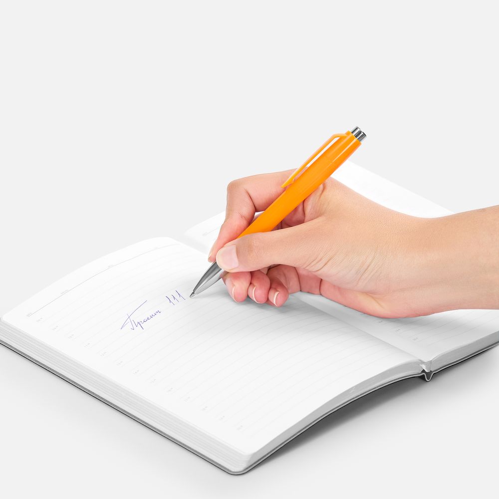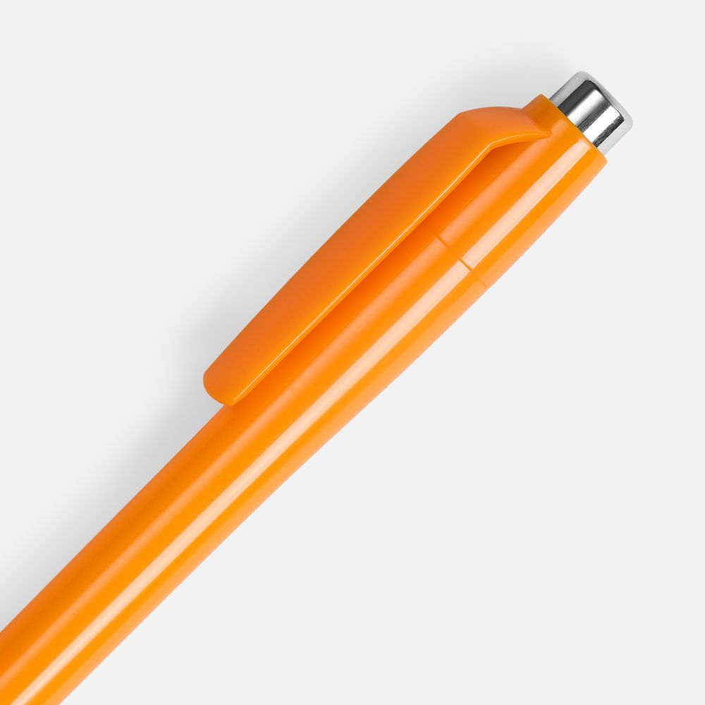 Пластиковая ручка с глянцевым корпусом и хромированными деталями. Большой клип идеален для нанесения логотипа компании.