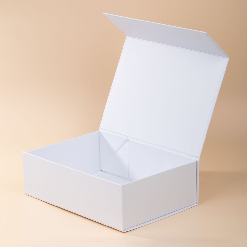 Коробка из переплетного картона, кашированного тисненой тонированной в массе бумагой, с крышкой на магните.