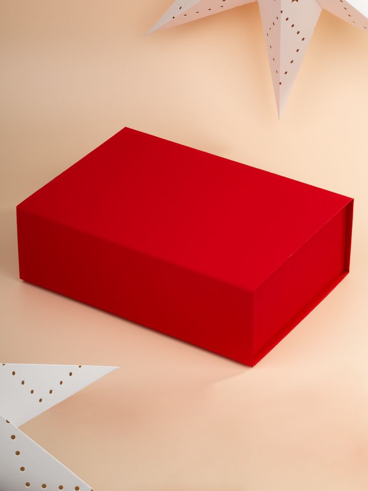 Коробка из переплетного картона, кашированного тисненой тонированной в массе бумагой, с крышкой на магните.