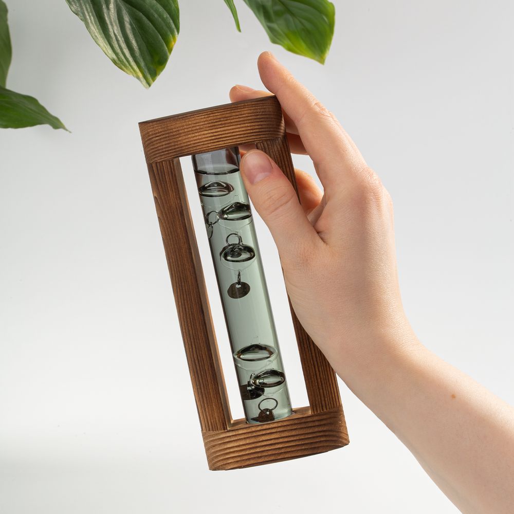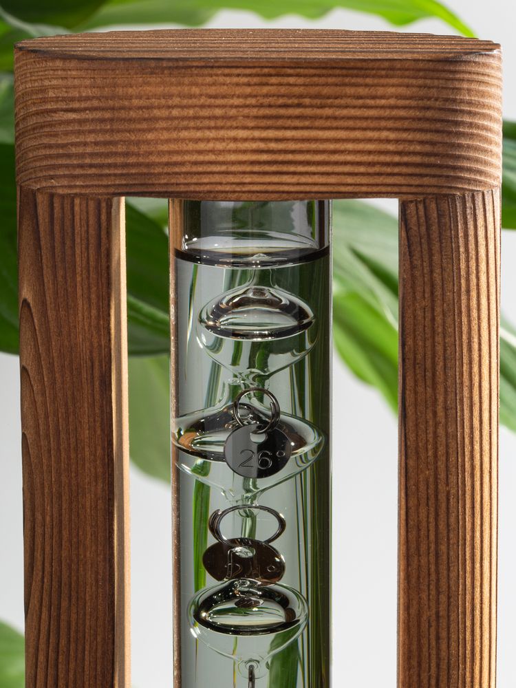 Любопытный термометр, изобретенный великим Галилео Галилеем, который первым обнаружил, что плотность жидкости увеличивается при снижении температуры и уменьшается при ее повышении.
