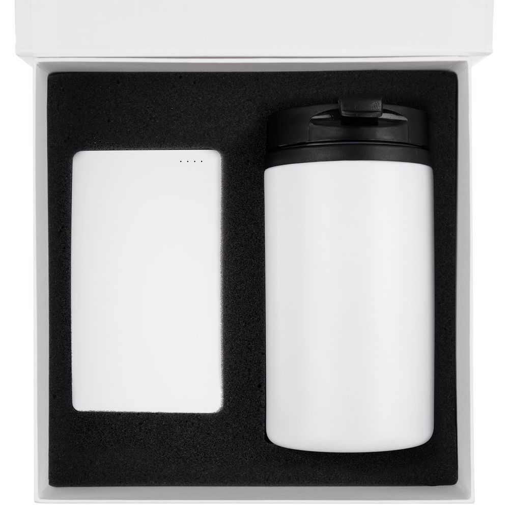 Набор Easy Trick — незаменимый спутник в дороге и офисе, с которым легко восполнить заряд энергии. Плоский аккумулятор легко поместится даже в карман, а компактная термокружка — в любую кофемашину.