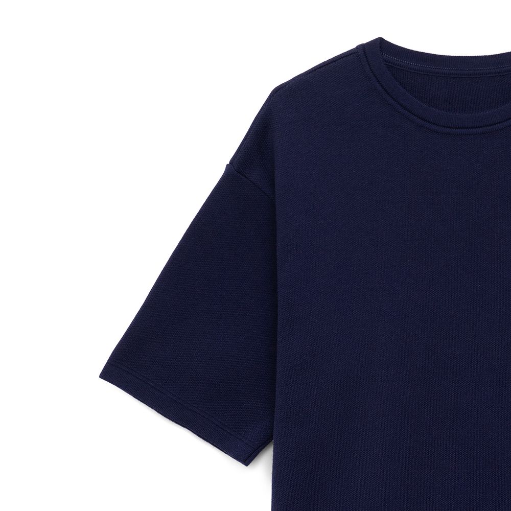 Siluetti Volumica — плотный вязаный джемпер-футболка прямого кроя с круглым вырезом и спущенной линией плеча. Фирменная бирка из силиконовой ленты станет интересной деталью, привлекающей внимание на фоне общей лаконичности модели.