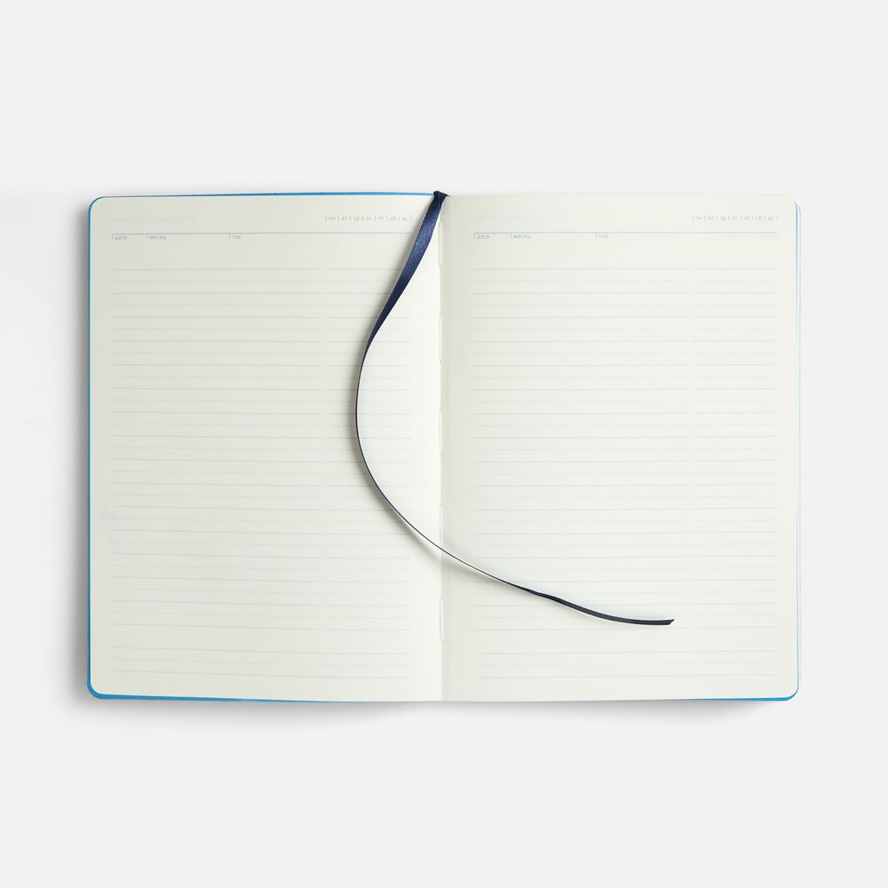 Ежедневник с гибкой обложкой, выполнен из материала Cowhide, дополнен ляссе в цвет обложки.