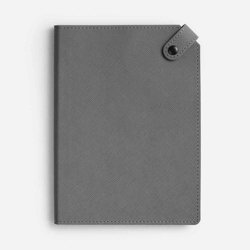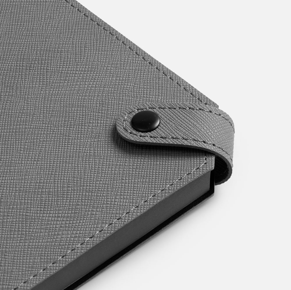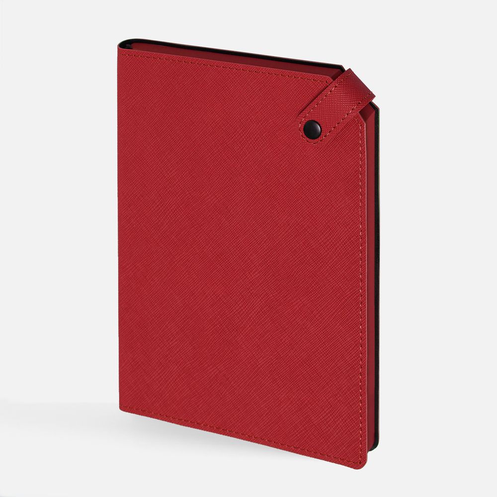 Ежедневник с гибкой обложкой, выполнен из материала Espresso, дополнен ляссе черного цвета и хлястиком на кнопке.