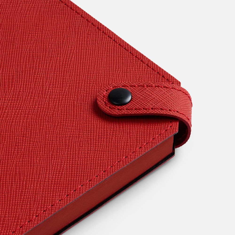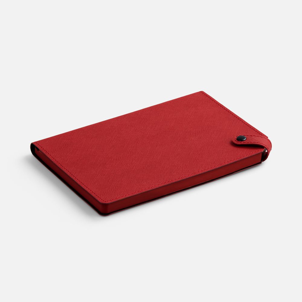 Ежедневник с гибкой обложкой, выполнен из материала Espresso, дополнен ляссе черного цвета и хлястиком на кнопке.