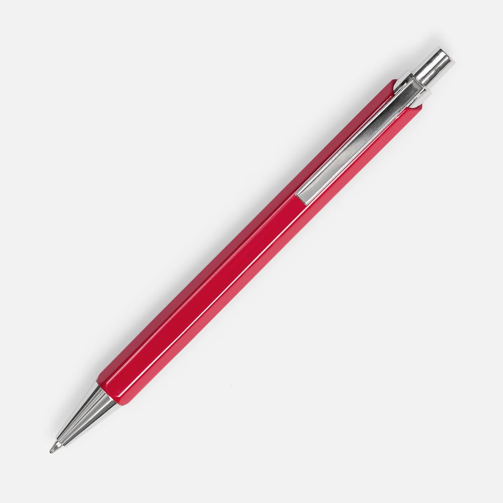 Металлическая шариковая ручка в глянцевом шестигранном корпусе с хромированными деталями.