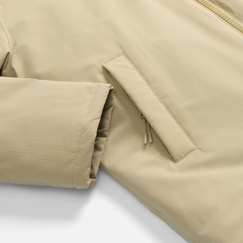Благодаря утеплителю в этой парке будет комфортно при температуре до -15°C. Продуманные детали: отстегивающийся капюшон, воротник-стойка и манжеты на резинке, а также защитная «снежная юбка» как в профессиональных горнолыжных брендах, — обеспечивают дополнительную защиту от холода и ветра.