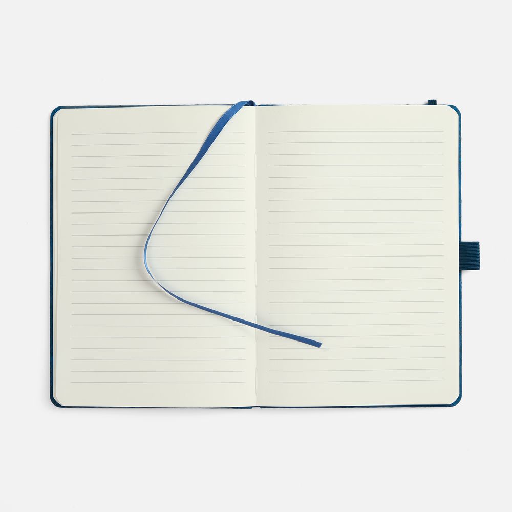 Блокнот с твердой обложкой из натуральной окрашенной пробки, дополнен петлей-резинкой для ручки, ляссе и резинкой в цвет обложки.