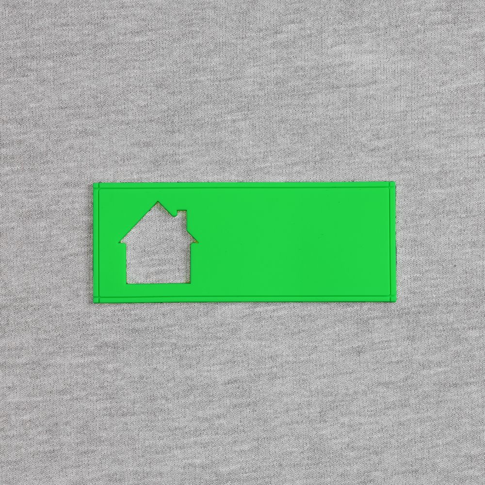 - сделать нанесение на изделии, поверх которого нашить лейбл так, чтобы вырубка стала частью целостного уникального дизайна.