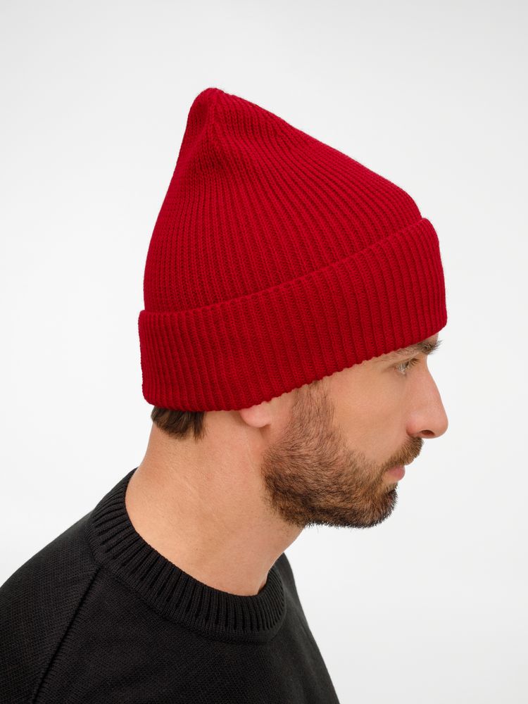 Удлиненный силуэт шапки Nobilis Mono из мягкой полушерстяной пряжи с широким отворотом создает стильный современный образ, а фактурная вязка добавляет объем и выразительность.