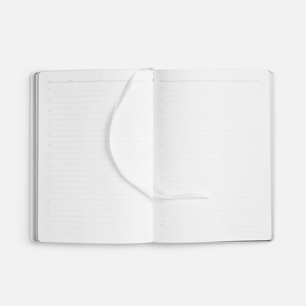 Ежедневник с гибкой обложкой, выполнен из материала Nebraska, белый BB (внутри и снаружи), дополнен ляссе белого цвета.