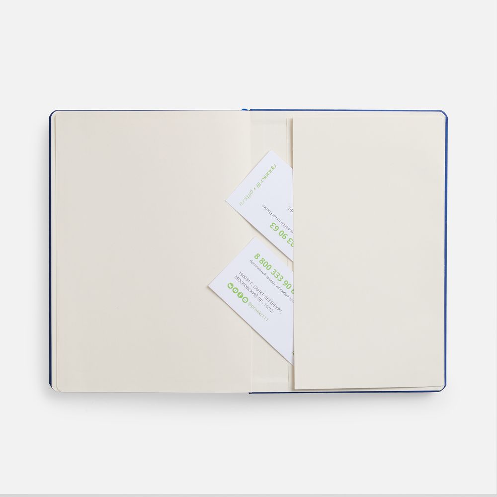 Ежедневник с твердой обложкой, выполнен из материала Nubuck Touch, синий НН, дополнен ляссе темно-синего цвета.