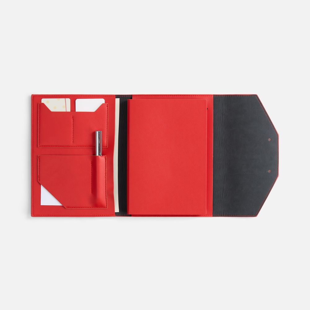 Ежедневник-органайзер в мягком переплете, формат А5+, с карманами для визиток и документов, петлей для ручки. Дополнен ляссе и капталом в цвет обложки. Клапан с прорезями застегивается на кобурные металлические кнопки.