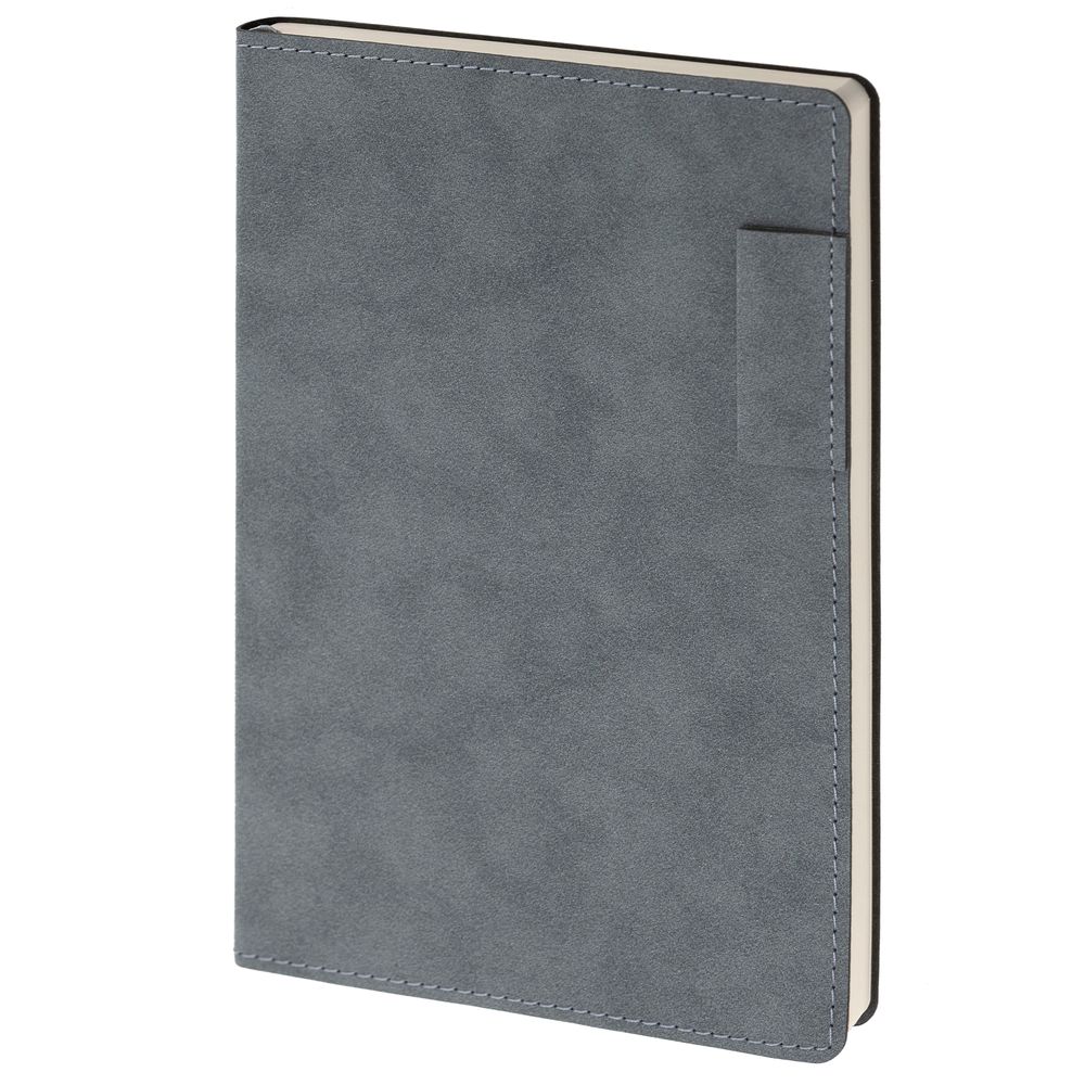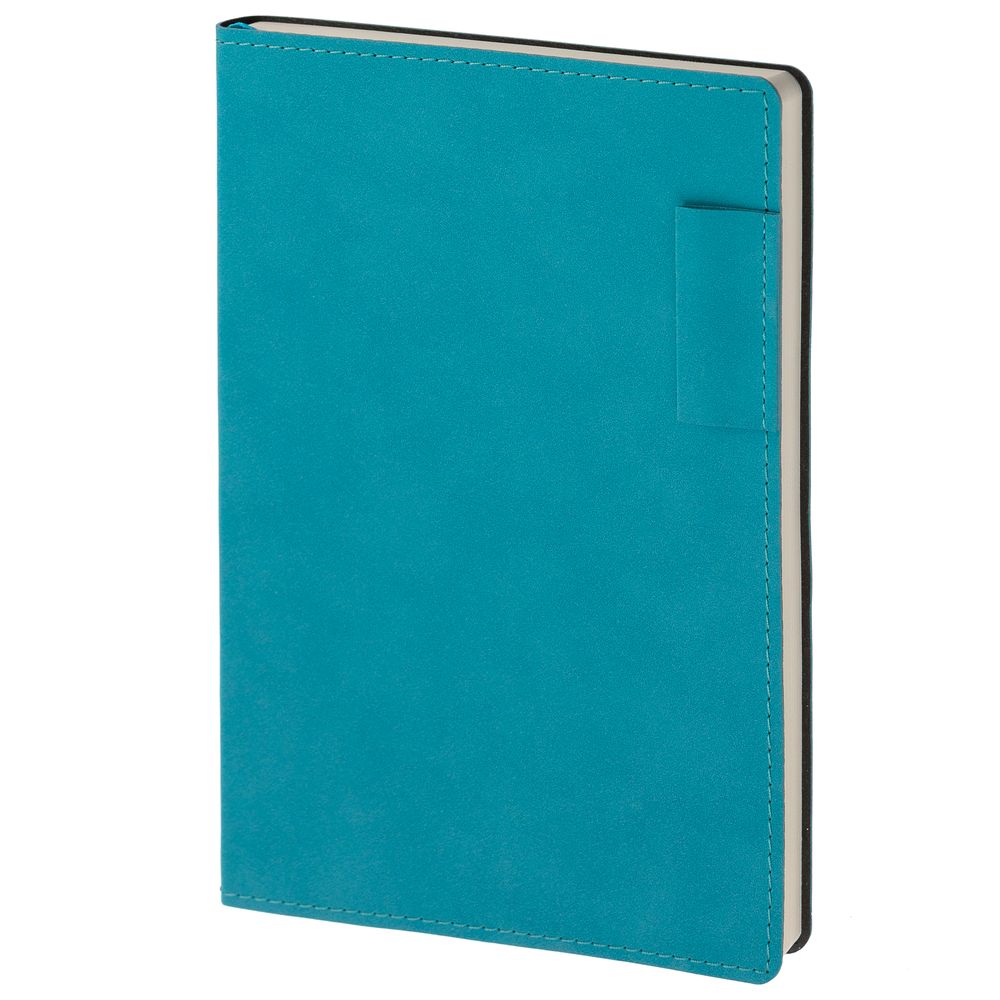 Ежедневник с гибкой обложкой, выполнен из материала Nubuck, темно-синий ХХ, дополнен петлей-лейблом для ручки и ляссе в цвет материала.