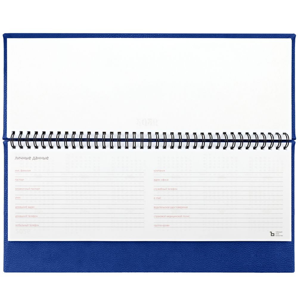 Планинг с твердой обложкой с поролоном, выполнен из материала La Fite, синий НН.