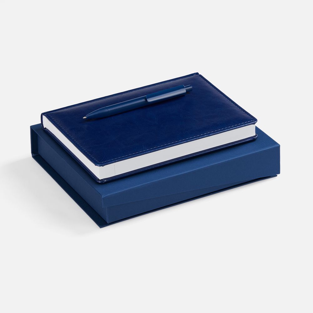 Две самые классические модели в одном деловом наборе: ежедневник Nebraska с «пухлой» обложкой и ручка Raja — кажется, они никогда не выйдут из моды.