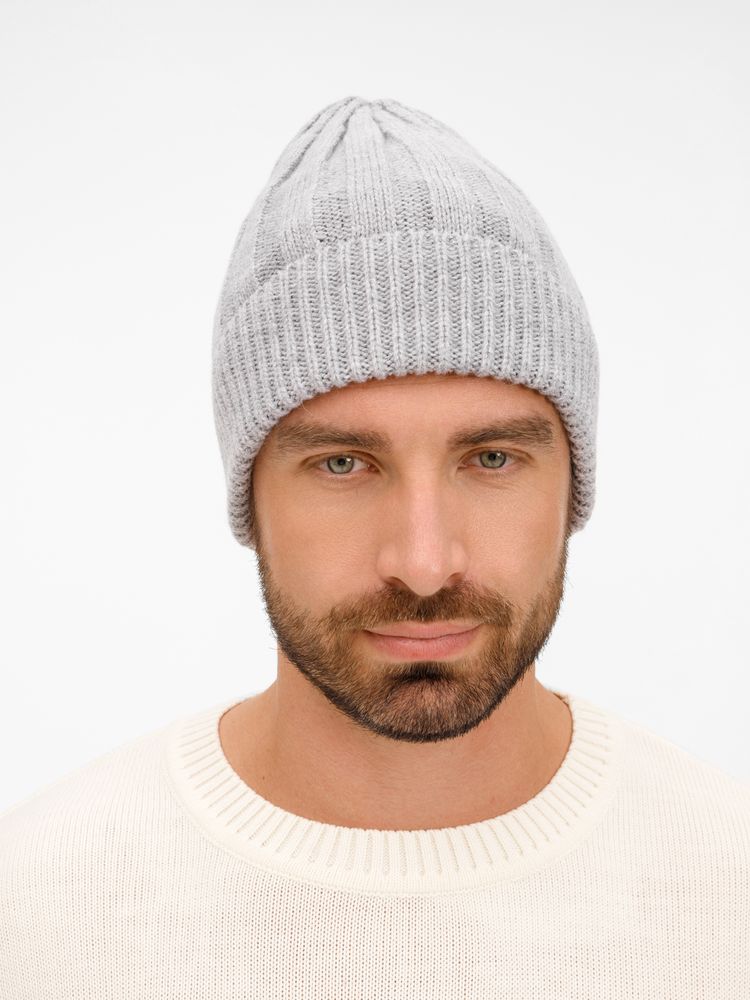 Однослойная шапка фактурной вязки с отворотом.