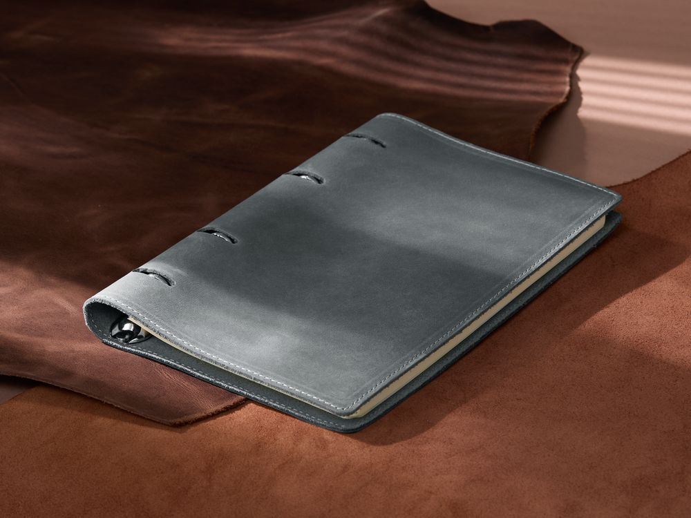 Ежедневник с блоком на кольцах, выполнен из натуральной кожи.