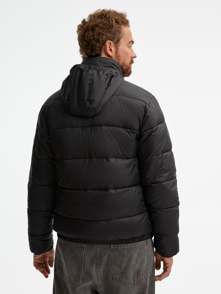 • Капюшон без подкладки убирается в воротник и плотно фиксируется на потайные кнопки