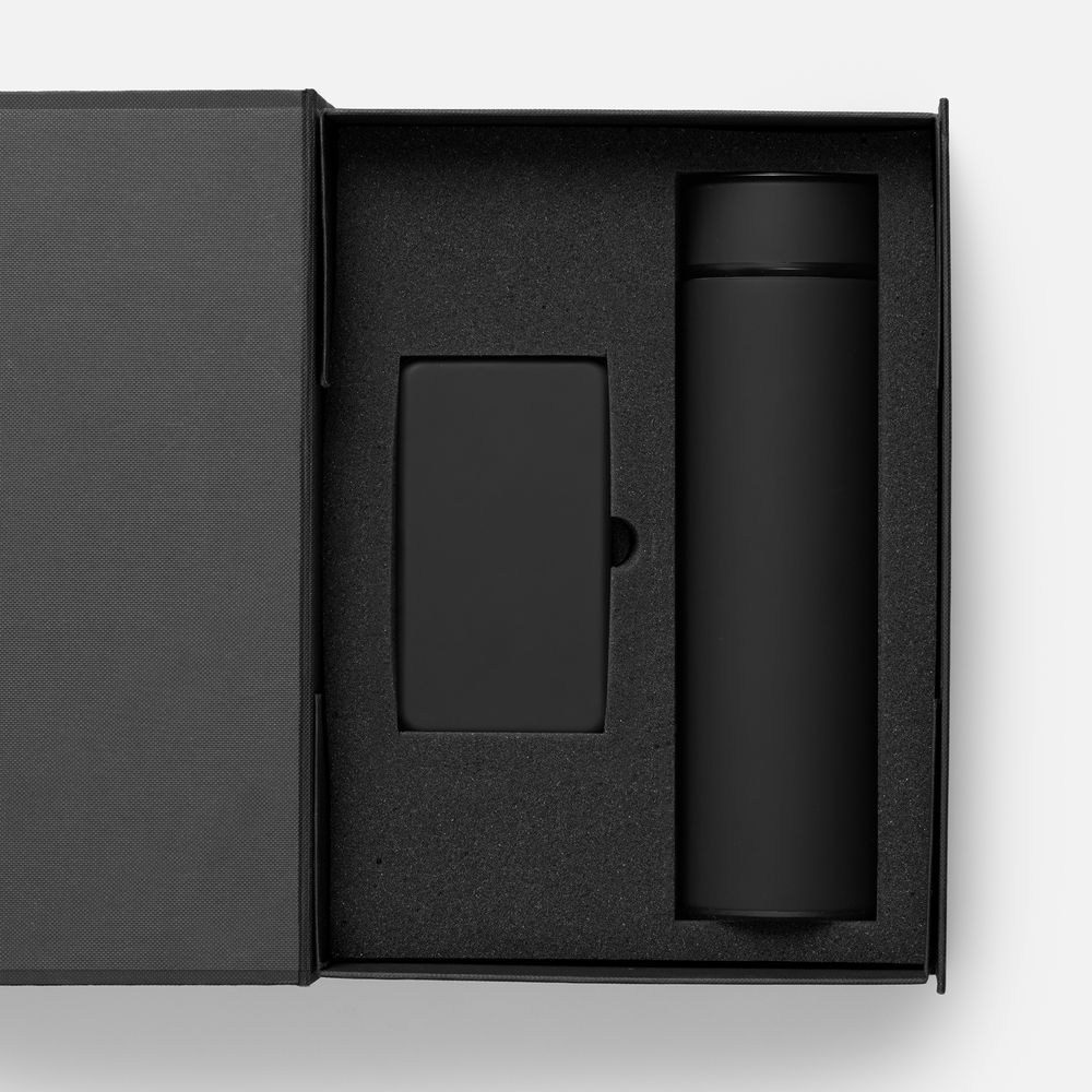 - аккумулятор - пластик; покрытие софт-тач; термос - нержавеющая сталь, 304; покрытие софт-тач; коробка - переплетный картон