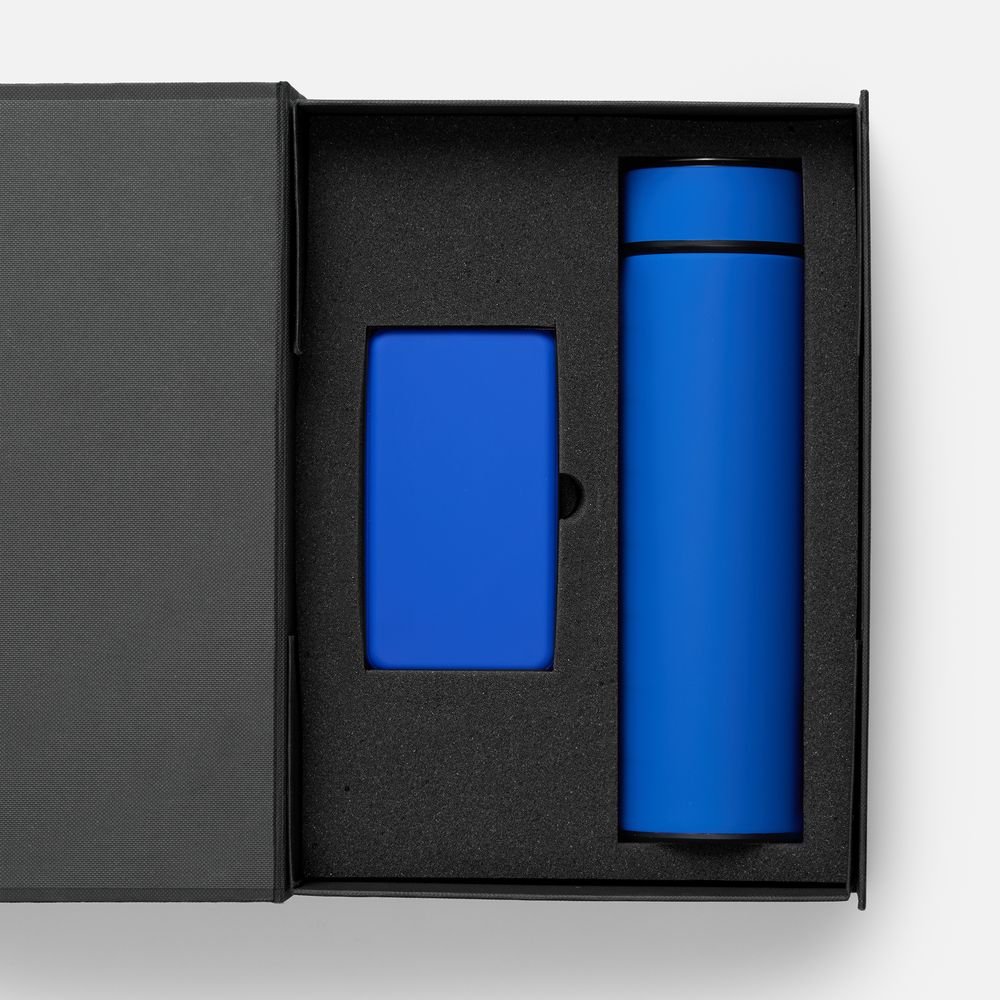 - аккумулятор - пластик; покрытие софт-тач; термос - нержавеющая сталь, 304; покрытие софт-тач; коробка - переплетный картон