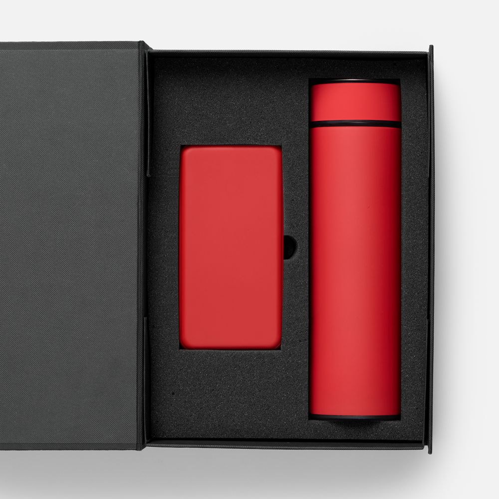 - аккумулятор - пластик; покрытие софт-тач; термос - нержавеющая сталь, 304; покрытие софт-тач; коробка - переплетный картон