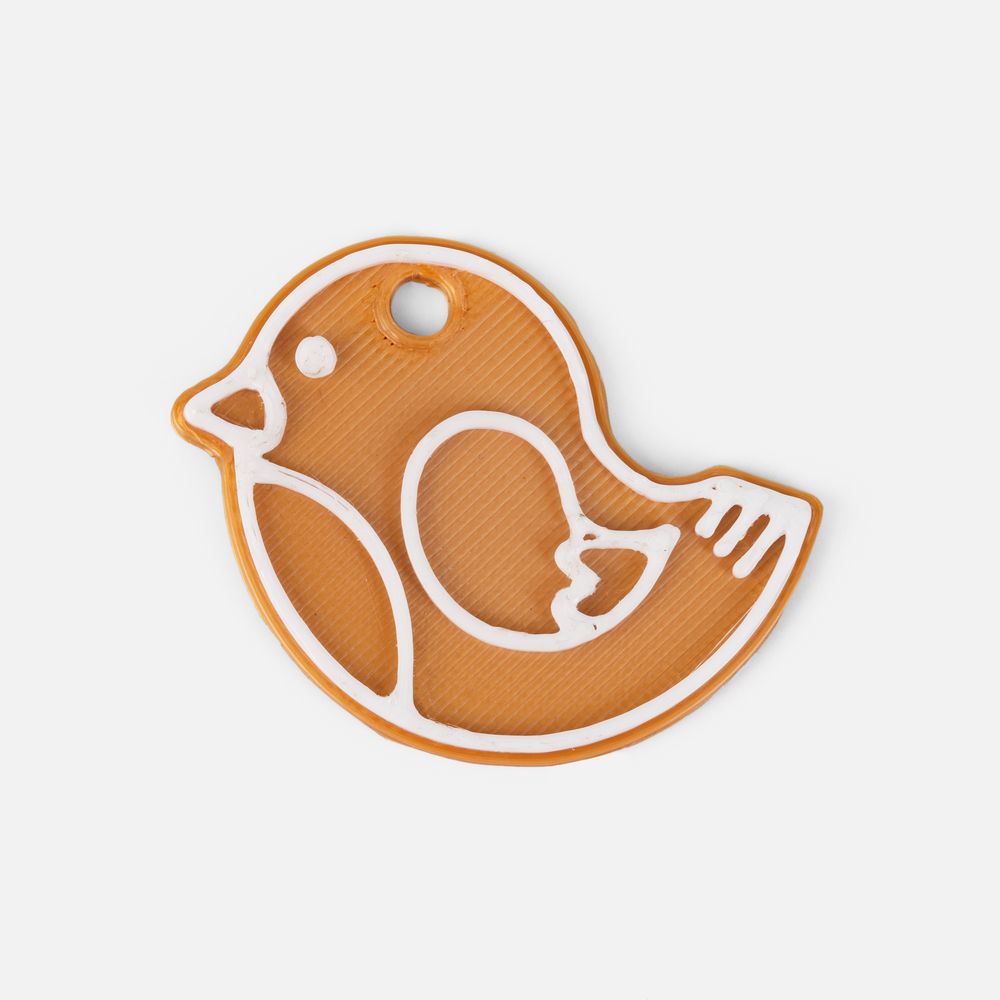 Мини-подвеска на фото изготовлена из PLA-пластика двух цветов: телесный 721С и белый.