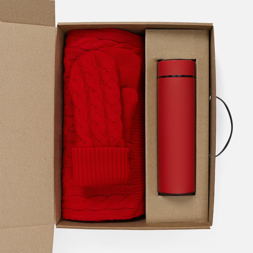 - шарф, варежки - акрил 100%; термос - нержавеющая сталь, 304; покрытие софт-тач; коробка - микрогофрокартон