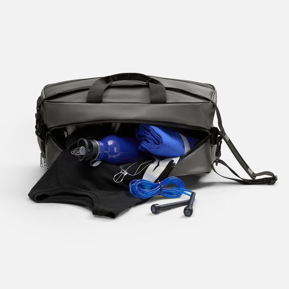 Усиленное дно с рифлеными ножками защищает сумку от износа, а боковое отделение с вентиляцией идеально подходит для обуви. Сумка оснащена удобными ручками и регулируемым плечевым ремнем, что обеспечит комфорт при переноске.