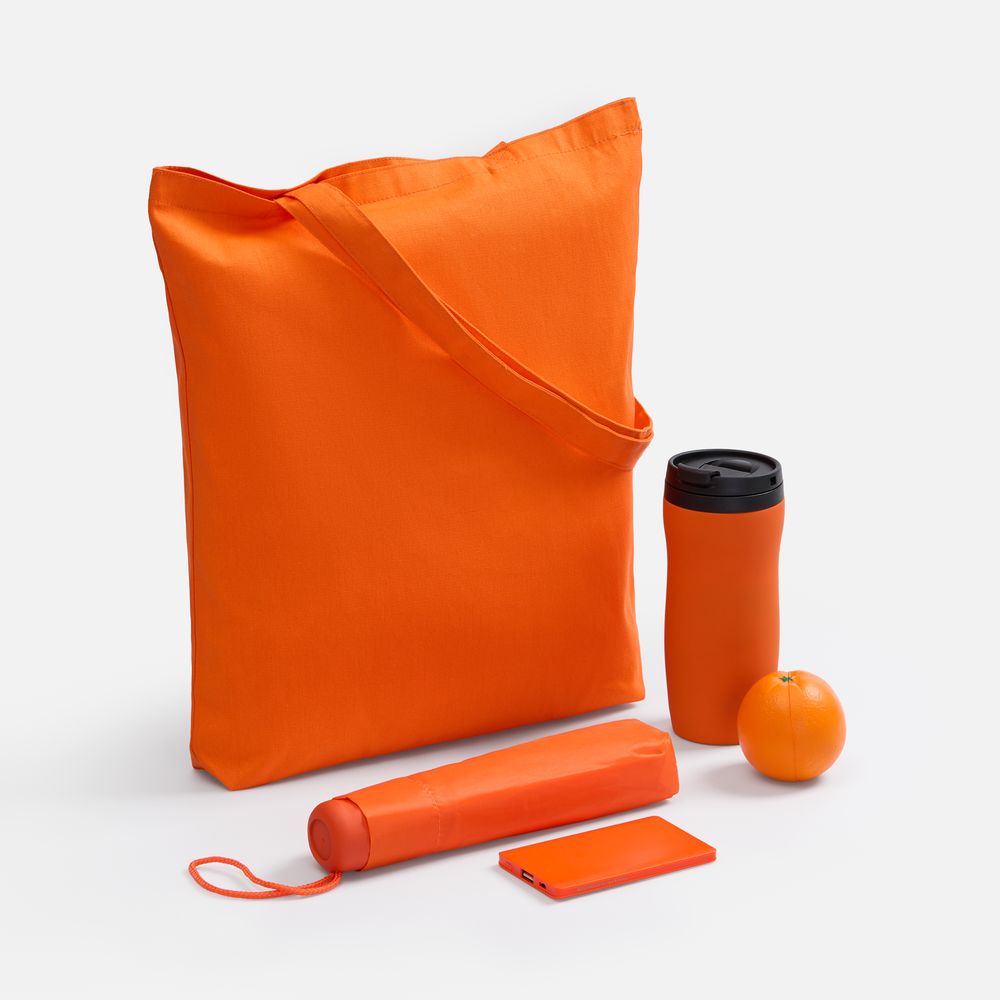 - зонт - полиэстер 190T, ручка - пластик; покрытие софт-тач; каркас, спицы - металл; аккумулятор - пластик; крышка термостакана, внутренняя колба - пластик, корпус - нержавеющая сталь; покрытие софт-тач; сумка - хлопок 100%, плотность 210 г/м²; антистресс - вспененный полиуретан