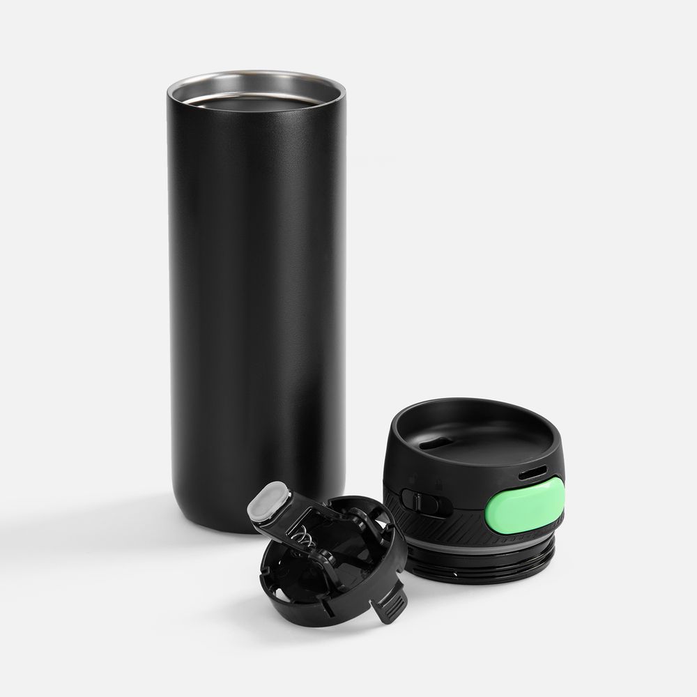 Термостакан X1 с цветной кнопкой, черный с зеленым