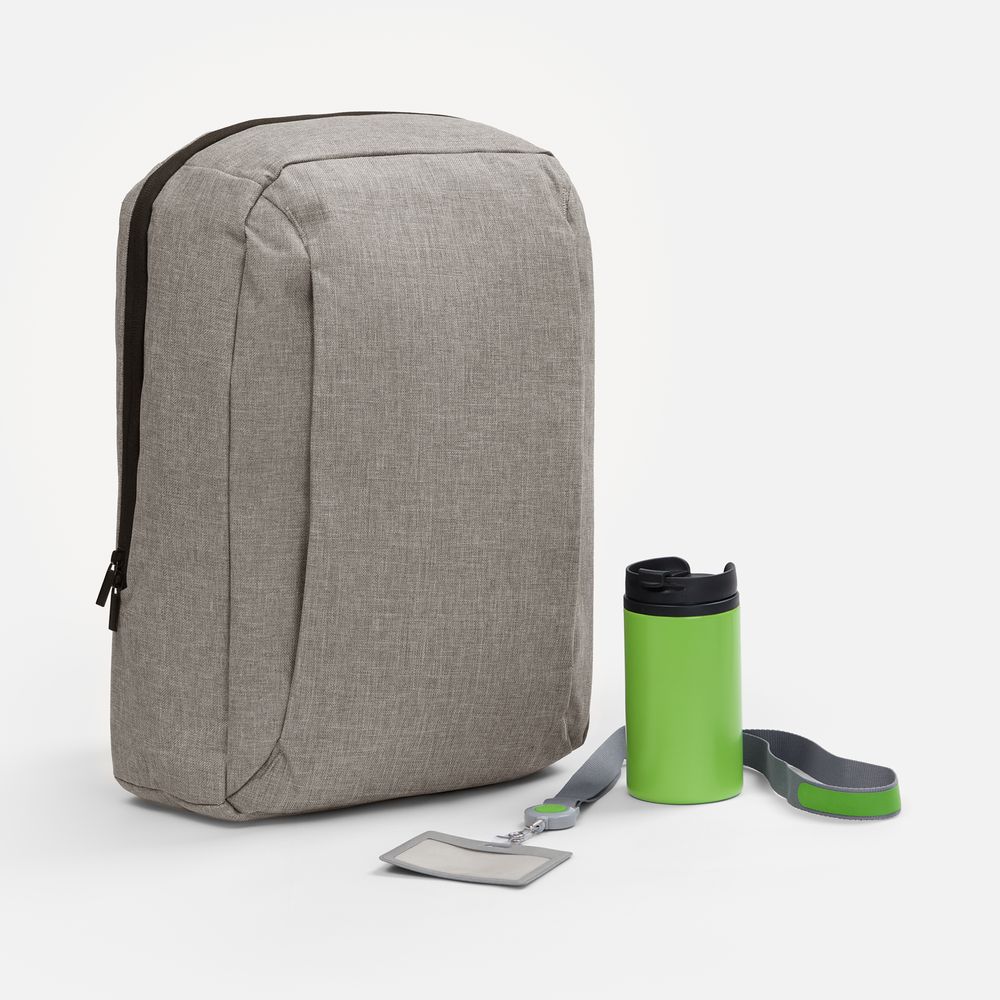 - рюкзак - полиэстер, 600D; чехол подушки - вискоза, 95%, спандекс 5%; наполнитель - вспененный полиуретан; чехол для подушки - полиэстер; термостакан - нержавеющая сталь, SS304 внутри, SS201 снаружи; крышка - пластик; органайзер, ежедневник - искусственная кожа, покрытие софт-тач; аккумулятор - пластик; ручка - пластик, покрытие софт-тач